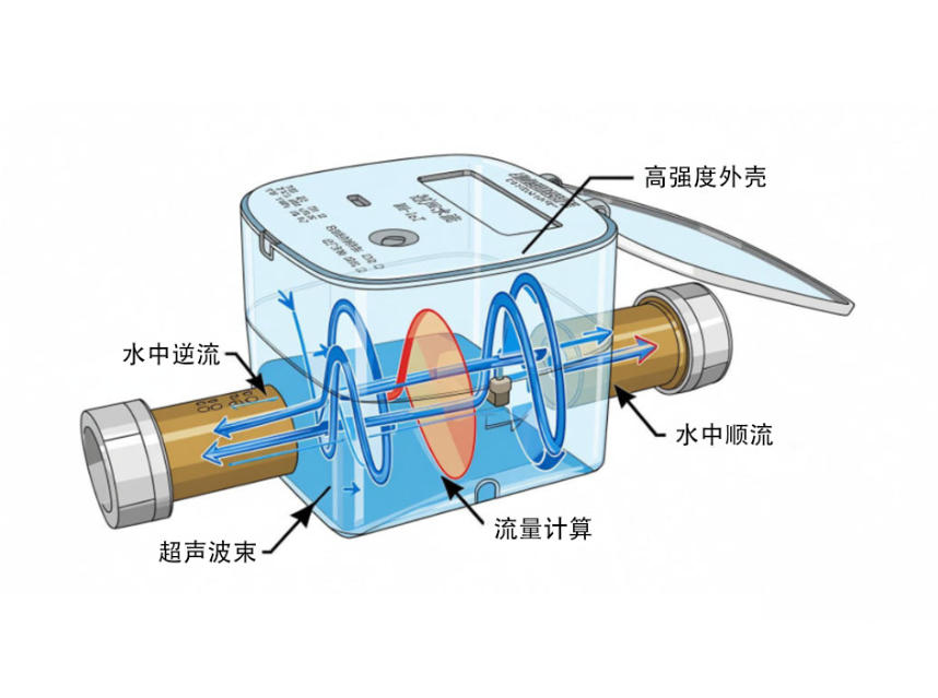這與傳統(tǒng)機(jī)械水表形成鮮明對比——機(jī)械水表通過水流推動葉輪或活塞等機(jī)械部件運動來計量,而超聲波水表則完全依靠聲學(xué)原理和電子元件進(jìn)行測量。